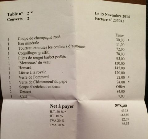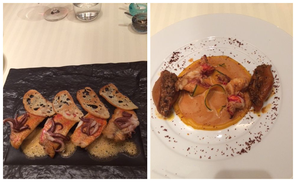 期待的主食來了,我點的是 filet de rouget!配上張牙舞爪的章魚!真的很嫩!這個,我自己家里怎么都煎不好,他怎么就可以這么完美呢? 可惜還是太少,就4塊,我自己家一頓吃10塊左右。如果我能做到他這么好吃,我能吃20塊。我老公是homard,也很不錯,但是這個沒有特別驚喜,因為在別的地方吃到過更好的。