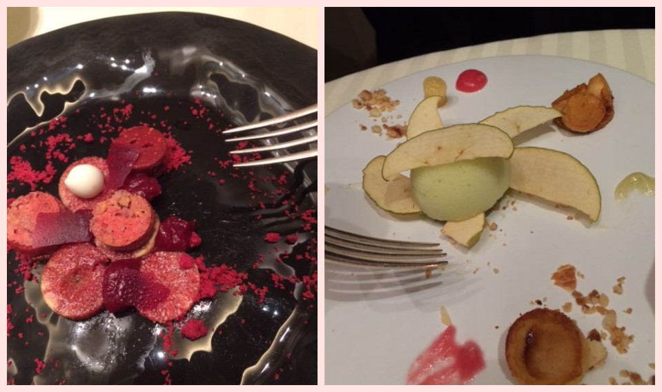 甜點吃了一半才想起來拍照,破像了,大家隨便看看吧,我們都覺得不算很特別。我那個紅色的是 figue+framboise醬, 他那個是蘋果sorbet。