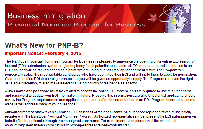 加拿大移民也傳來佳音!加拿大曼省省提名項目確認于當地時間2月4日想所有申請人全面開放EOI網上篩選系統!這是繼2014年底加拿大各省移民局相繼發布利好消息之后的又一強心劑!深受中國移民客戶喜愛的加拿大曼省省提名項目也終于沖破嚴冬,迎來有又一個春天!