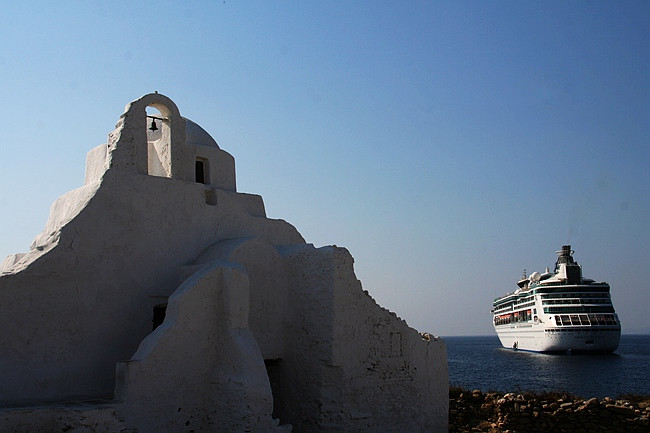 米克諾斯島上的教堂眾多,帕拉波爾蒂阿尼教堂是其中最為著名的一座。純白色的教堂襯著港灣美景,呈現出一片祥和的氣氛,仿佛還停留在中世紀的寧靜當中。