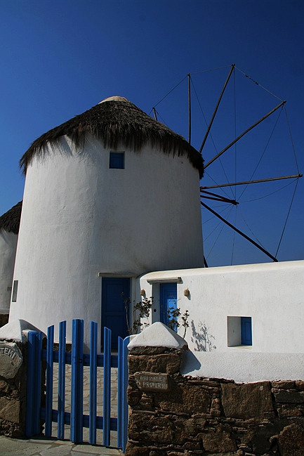 卡特米利風車群位于Kato Mili 山丘上,是米克諾斯最具代表性的標志。風車建于16世紀,一共五座,屋頂用茅草覆蓋,原本風車是用來磨麥的,不過現在已經停止使用,卻變為一道美麗的風景。在這里俯瞰米島,愛琴海上的海鷗以及島上的各具特色的白屋盡收眼底。