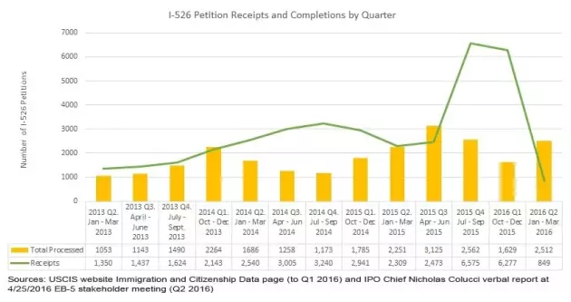 I-526的收件數,第二季度,大幅下滑,見下圖: