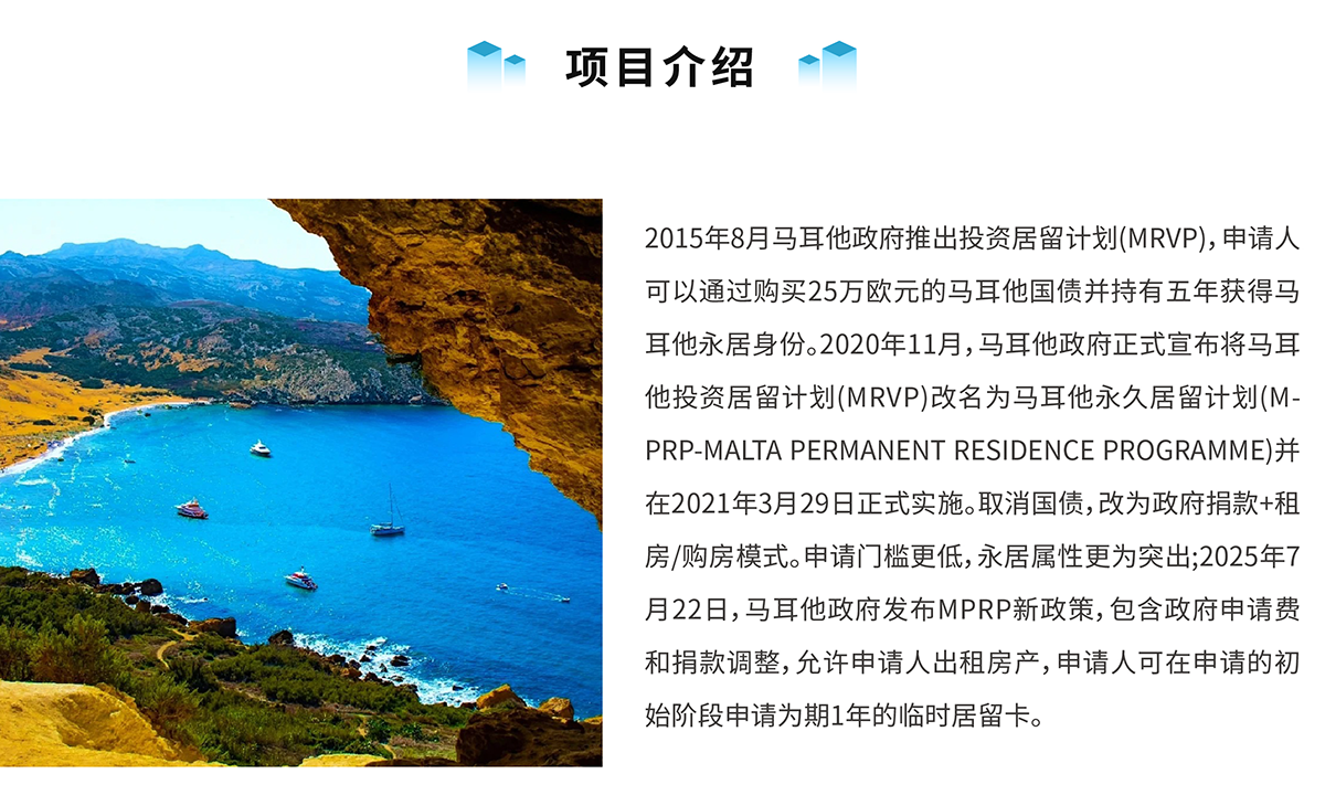![]() 政策寫入移民法案,安全有保障 2015年8月,馬耳他國債投資移民項(xiàng)目推出,投資25萬歐元即可獲得馬耳他永久居留權(quán)利。