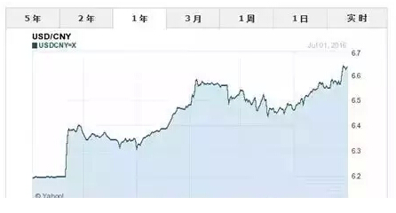 2015-2016美元對人民幣走勢