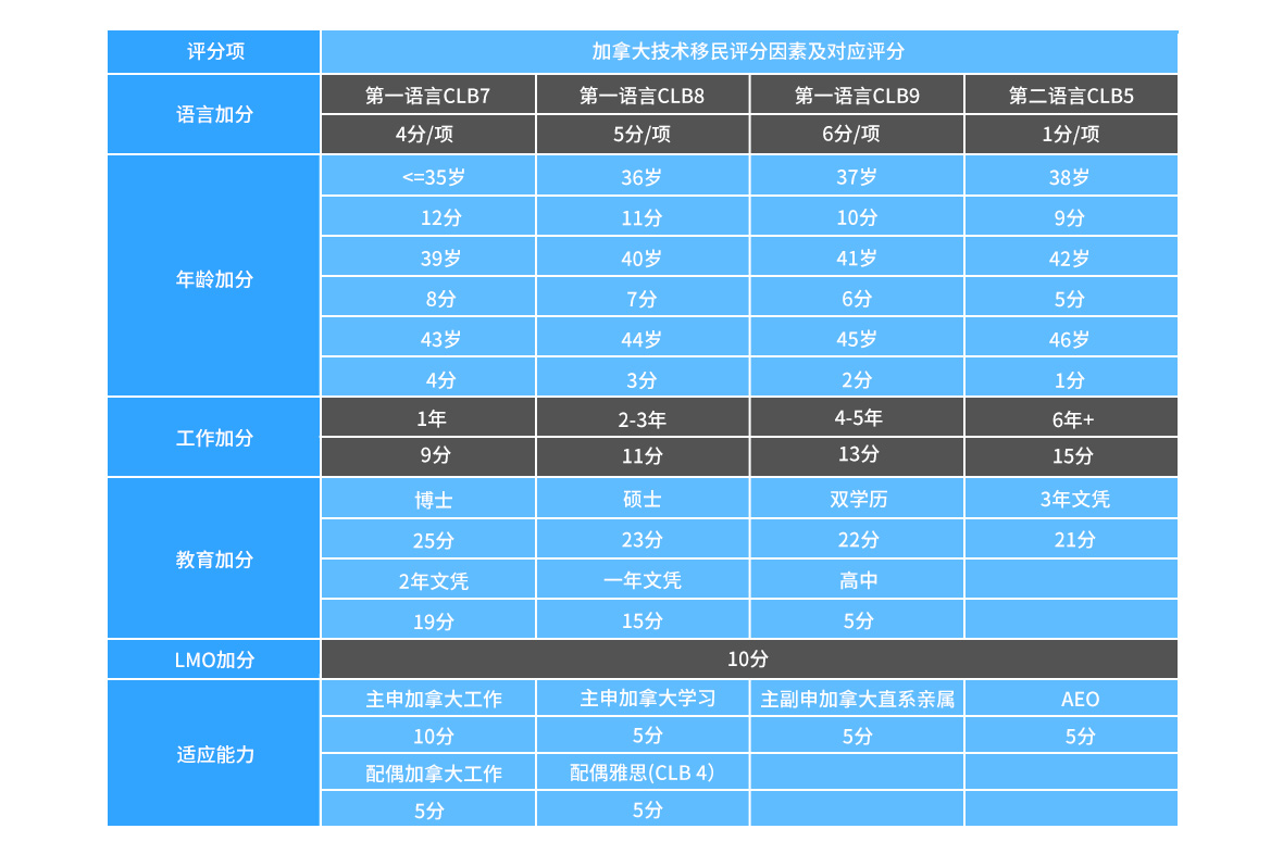 配偶加分(教育、語言和加拿大工作經(jīng)驗);