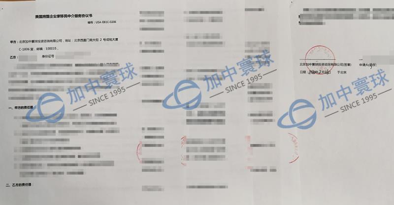 疫情期間,恭喜Z先生與加中寰球成功簽約美國EB1-C項目