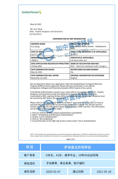 薩省雇主擔保技術類別(SNIP International Skilled Worker: Employment Offer) 主要是為了吸引有技術、學歷、經驗的合適海外人才,滿足薩省當地就業市場的需求。 以其申請條件要求低,每年約 3500 個充足的配額, 深受眾多加拿大移民申請人的喜愛。獲得薩省省提名的申請人即有資格向加拿大聯邦申請永居簽證。