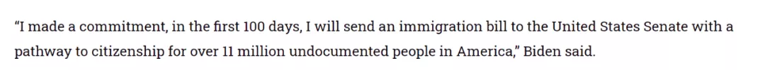 美國(guó)當(dāng)選總統(tǒng)拜登團(tuán)隊(duì)近日表示,執(zhí)政第一天將計(jì)劃推動(dòng)大規(guī)模的移民改革,包括為美國(guó)國(guó)內(nèi)多達(dá)1100萬(wàn)的無(wú)證移民提供取得合法身份的渠道。