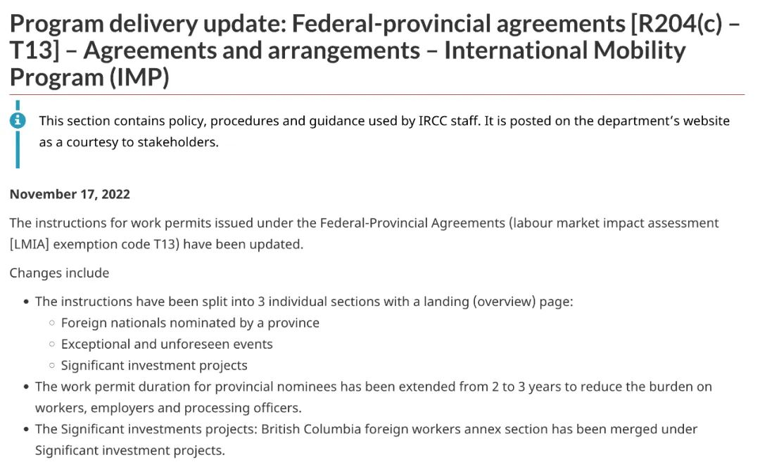 加拿大移民部最新通知:獲得省提名證書后申請封閉工簽有效期將增加一年!