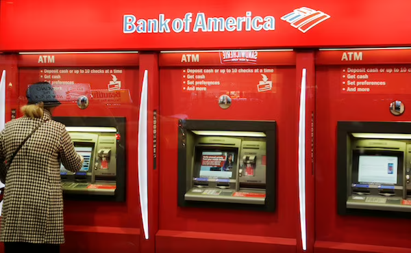 紐約一位美國銀行的客戶在使用自動取款機(照片:美聯社) |