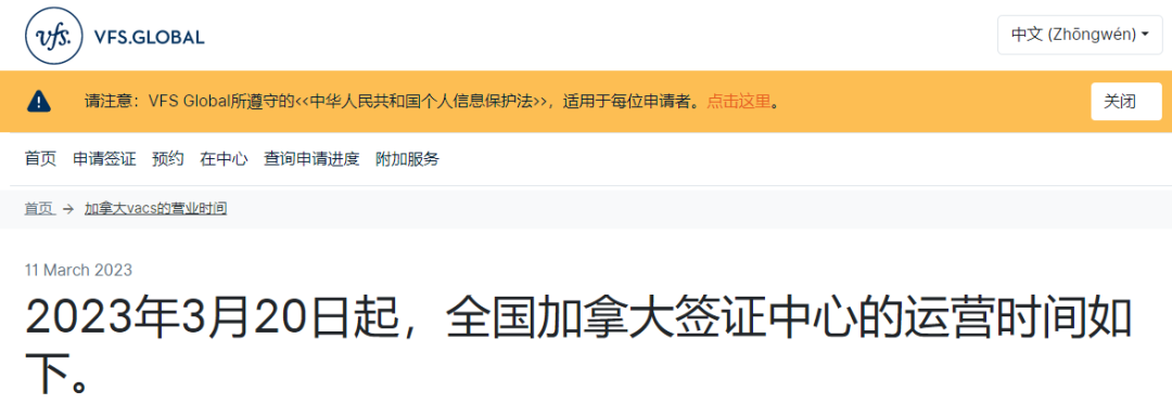 2023年3月20日起,全國加拿大簽證中心的運營時間如下。