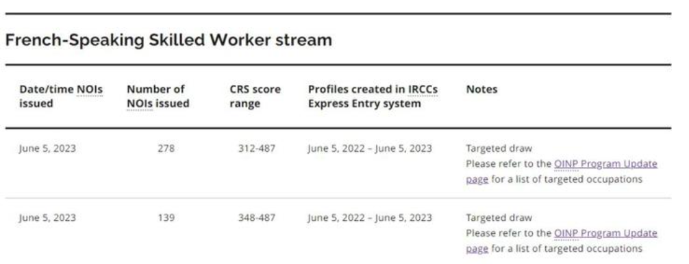 2023年6月5日,加拿大安省法語類別移民項目(Ontario’s Express Entry French-Speaking Skilled Worker)進行了兩輪邀請,本次邀請的特點是:邀請分低,邀請的職業也比較寬泛,多數職業為常見職業!最低甚至只要312份。