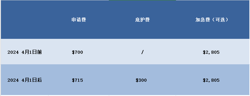 不加急申請總費用:715(申請費)+300(庇護費)= $1,015美元