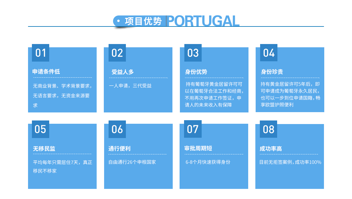 2017年11月26日生效的第102/2017法案中,允許非歐盟國家公民可通過資本轉移的投資方式獲得葡萄牙“黃金簽證”。依據此法案申請黃金簽證的非歐盟國家公民,應投資至少 35 萬歐元購買公司資本化的投資基金或風險投資基金。其投資期限至少是五年,并至少有60%的投資通過總部設在葡萄牙境內的商業公司實現。 居留許可:2年+2年+2年 (5年后,可以續簽5年居留許可; 或申請永居; 或申請國籍) 居住要求:14天+14天+14天(14天就是兩年內滿足14天的居住要求)