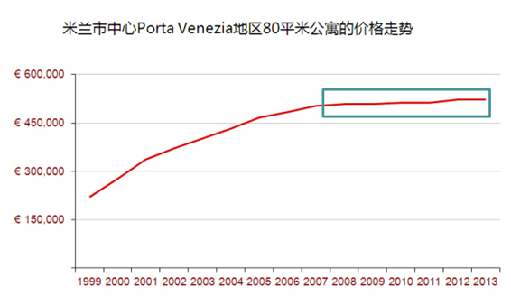 從圖中可以看出,自2008年之后,意大利房價不僅沒有大幅度下跌,反而呈現穩定上升的趨勢。經濟危機對于意大利房價并沒有影響,房產市場也很優良,目前米蘭市內還會看到正在新建的樓盤,這些都體現了意大利經濟的抗壓能力。