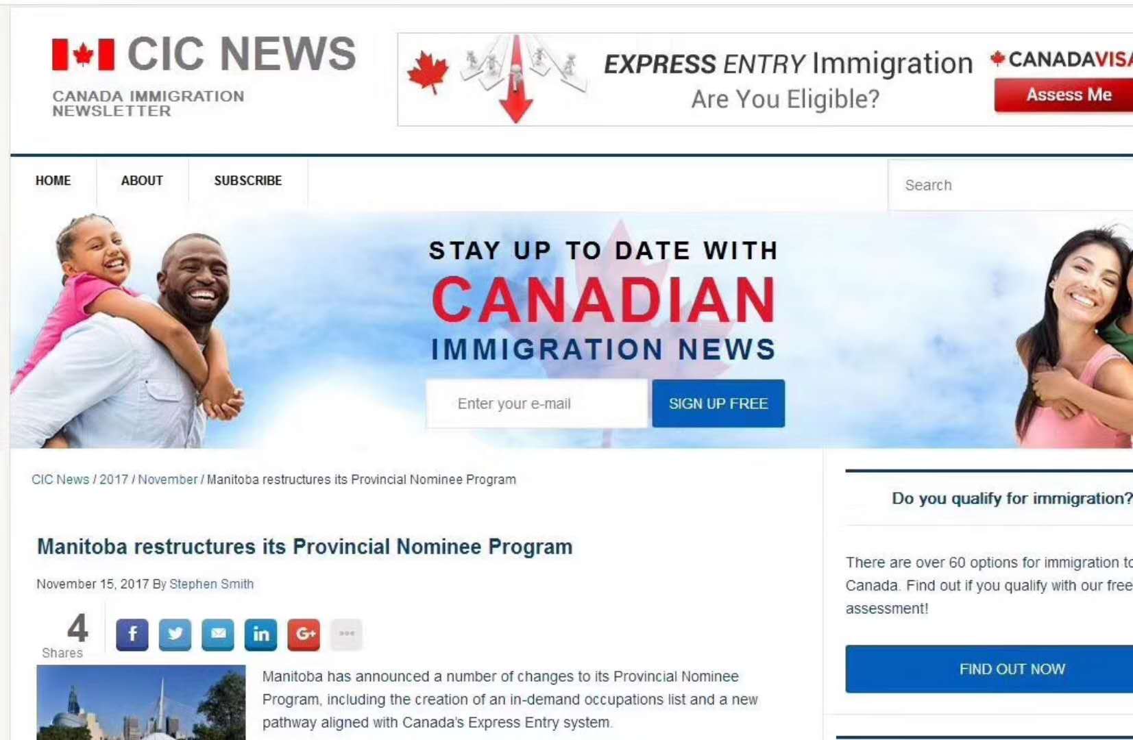 2017年11月15日,繼阿爾伯塔省宣布省提名政策將在2018年1月2日起實施新政后,曼省移民局也在其官網宣布了2018年移民新政策。
