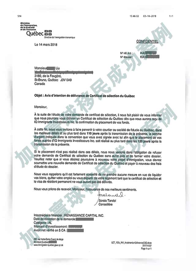 從遞交材料到魁投免面試通過,僅用了6個月!恭喜劉先生!
