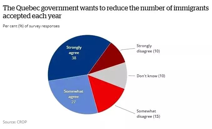 魁省政府減少移民的計劃盡管遭到魁省反對黨和聯邦政府的反對,反對的理由是加劇魁省企業對勞動力短缺的擔憂,但該計劃卻得到了魁省大多數居民的支持。