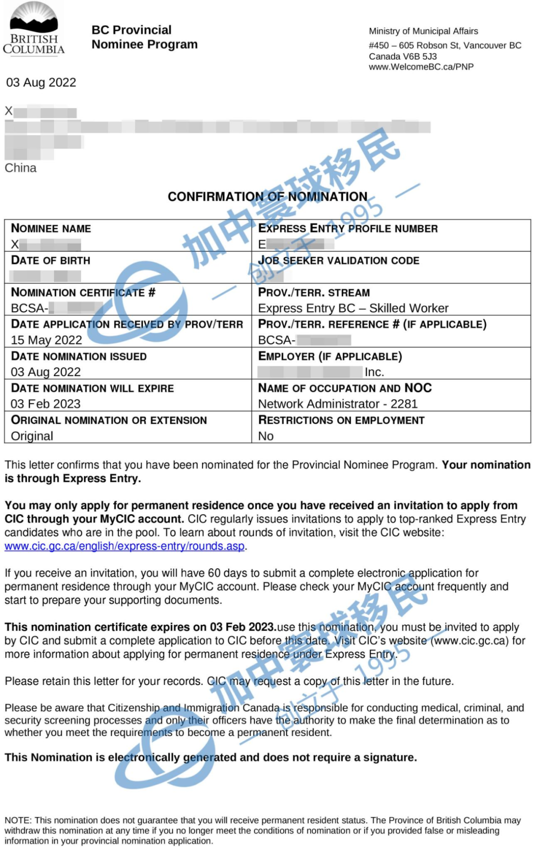 X先生的崗位完全匹配,行業(yè)完全匹配,合格雇主先做LMIA,為后續(xù)的省提名成功做了保障。