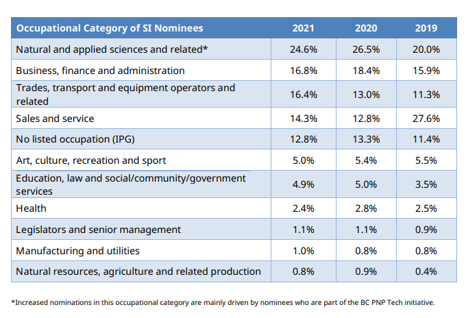 在2021年,BC省總計給科技類別候選人發出了1,697份省提名信,占到了全年發出省提名信總量的27.3%。