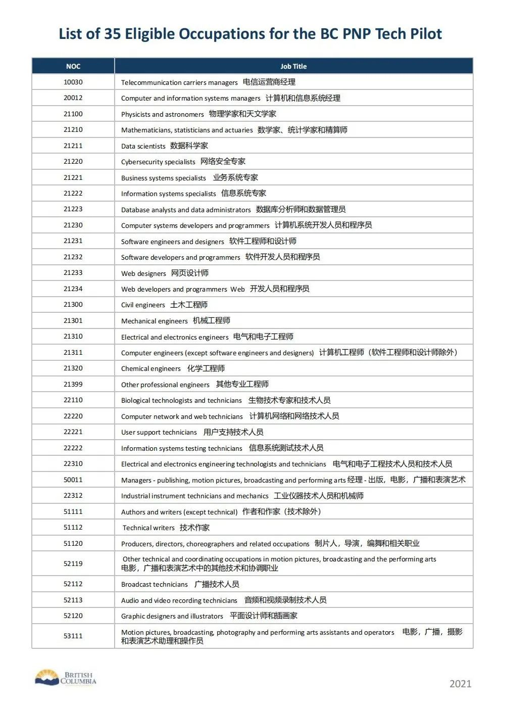1.申請人在過去所從事的崗位必須符合35個指定崗位之一,且需要獲得來自BC省雇主的Job offer。Offer需要至少一年,且在遞交申請時至少還有120天剩余時間。