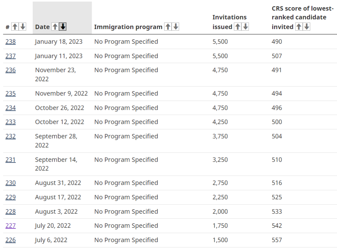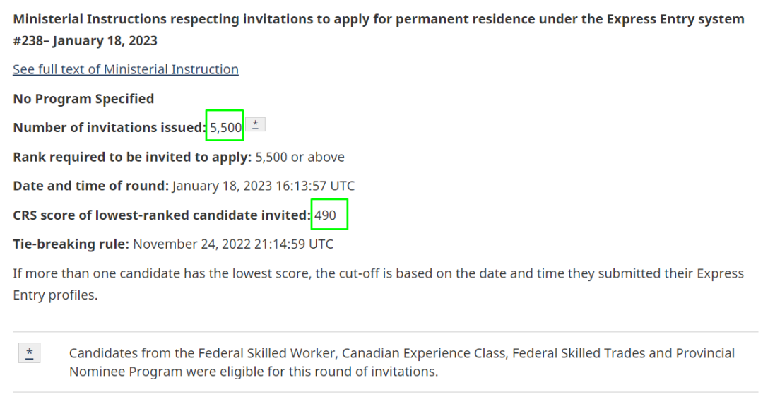 1月18日,加拿大聯邦EE快速通道不區分抽選類別,向快速通道候選人發出了5500份邀請,抽選分490分。