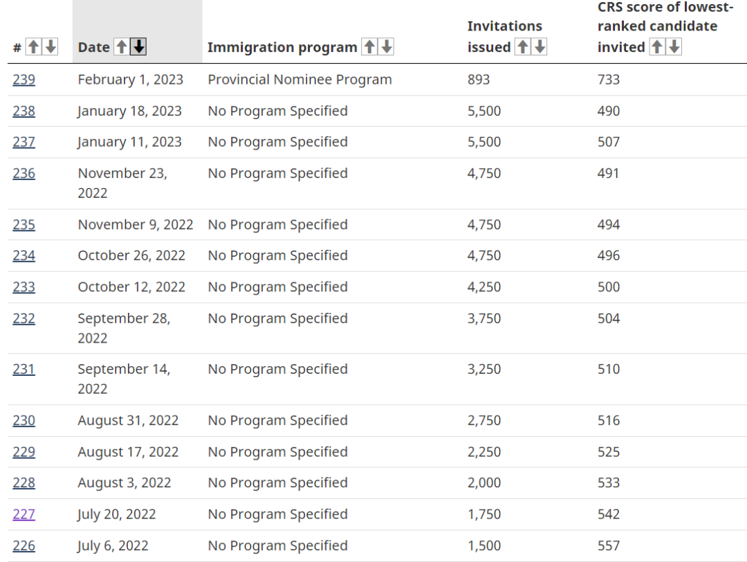 2月1日,加拿大聯邦快速通道向有省提名的快速通道候選人發出了893份指定項目邀請,抽選分733分。