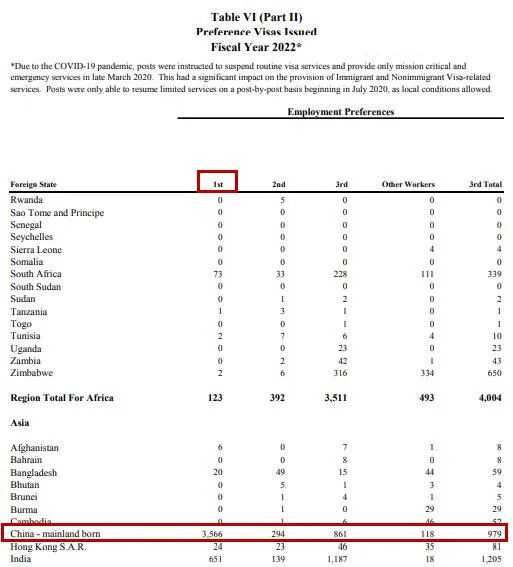 從上表可以看出,2022財(cái)年中國大陸申請(qǐng)人共獲得了EB-1簽證3566張。