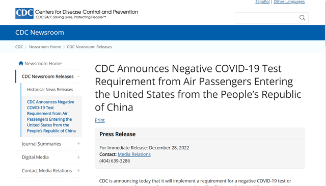 來源CDC官方信息,鏈接如下:https://www.cdc.gov/media/releases/2022/p1228-COVID-china.html
