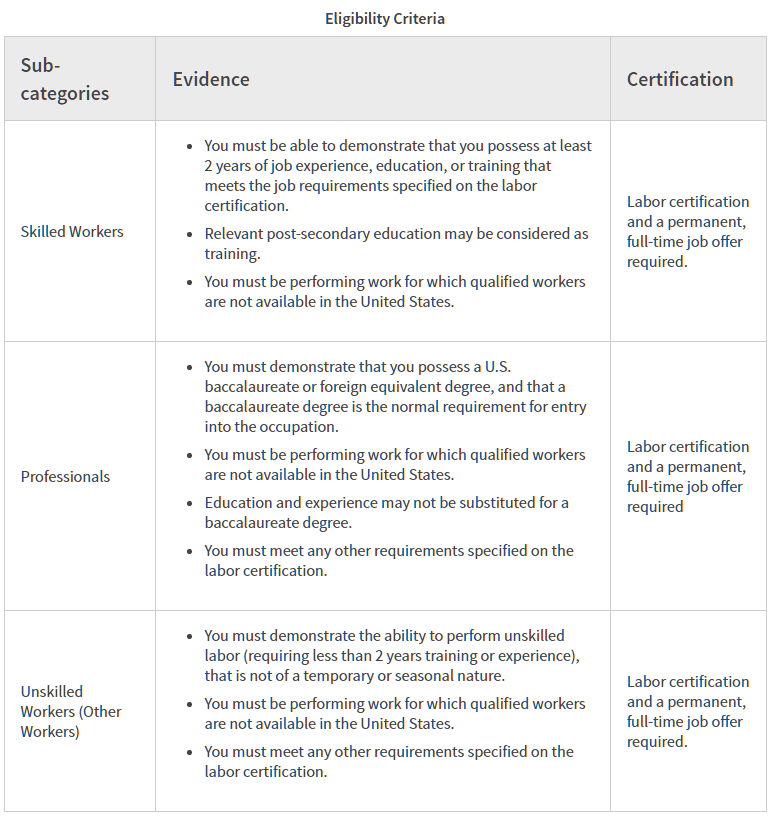 EB-3技術移民申請要求